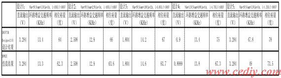 3 TPS54310的平均SPICE模型的验证与应用 为了验证模型的正确性,用TI公司提供的专用设计软件SWIFT™ Designer 2.01设计了五种DC-DC变换电路,然后利用前面所建的TPS54310模型,构成同样的DC-DC变换器的仿真电路,在ICAP4软件上进行直流分析和交流小信号分析,比较这两种方法获得的数据,见(表1)。可以看出,二者的差别非常小。因此有理由认为,TPS54310的平均SPICE模型是可信的。